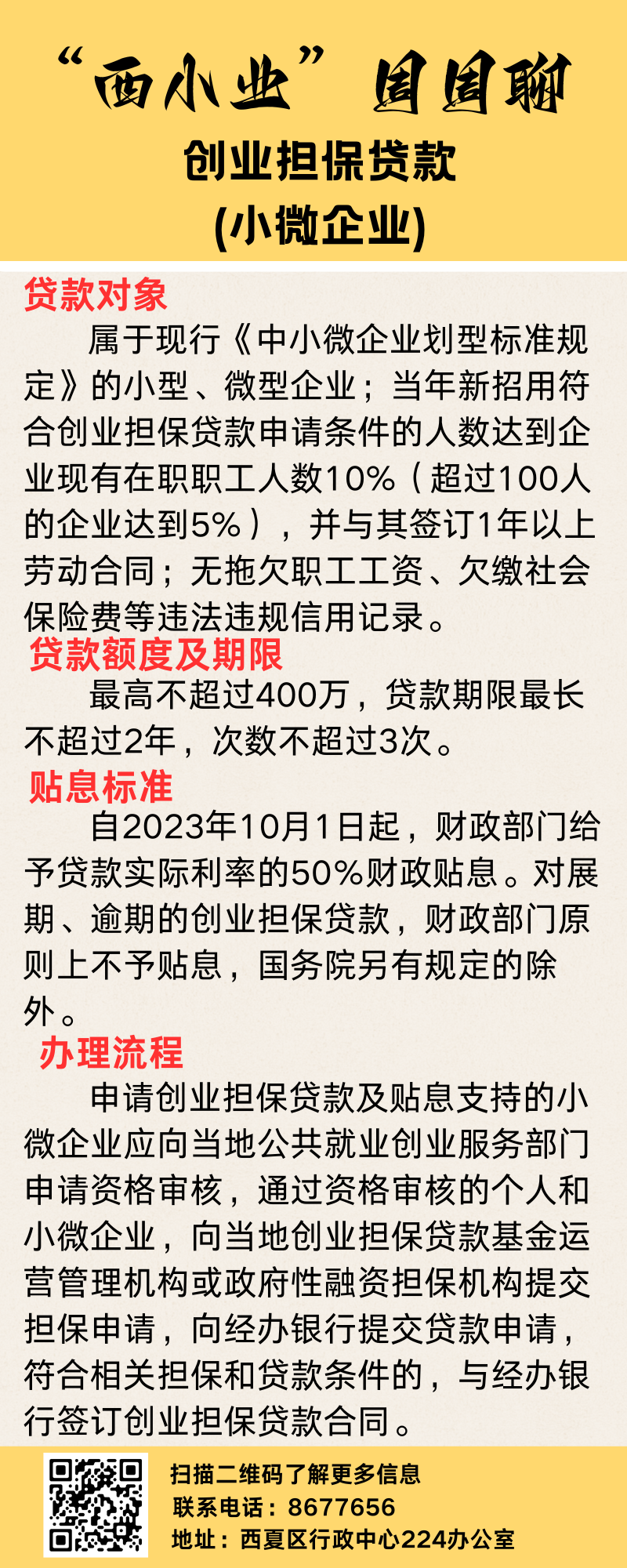 “西小业”周周聊——创业担保贷款(小微企业)