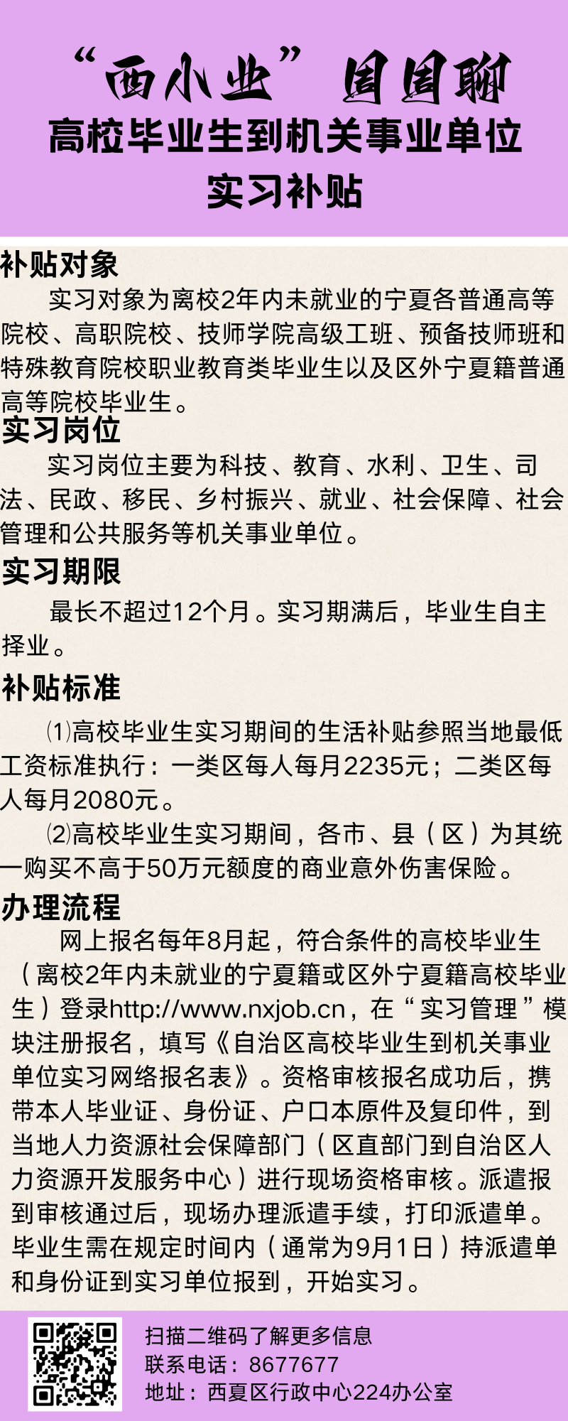 “西小业”周周聊——高校毕业生到机关事业单位实习补贴