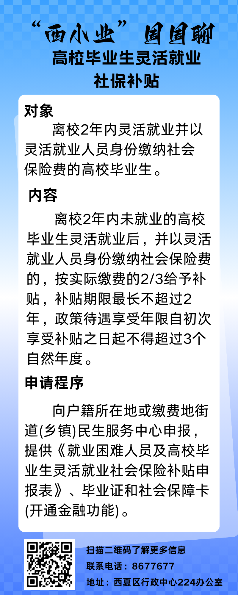 “西小业”周周聊——高校毕业生灵活就业社保补贴