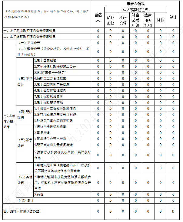 三、收到和处理政府信息公开申请情况