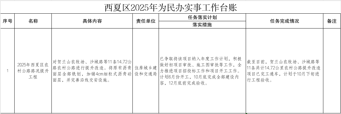 西夏区住房城乡建设和交通局2025年为民办实事逐月进展情况(9月)