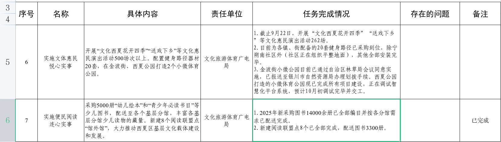 银川市西夏区文化旅游体育广电局2025年为民办实事进展情况(9月份)