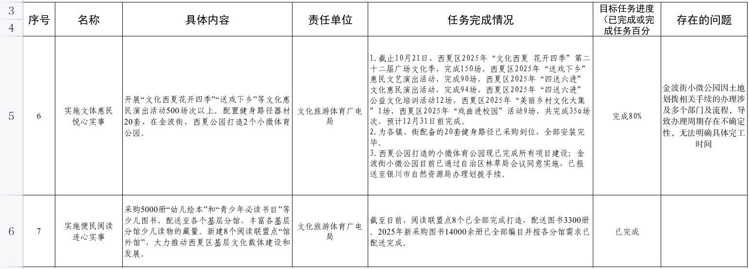 银川市西夏区文化旅游体育广电局2025年为民办实事进展情况(10月份)