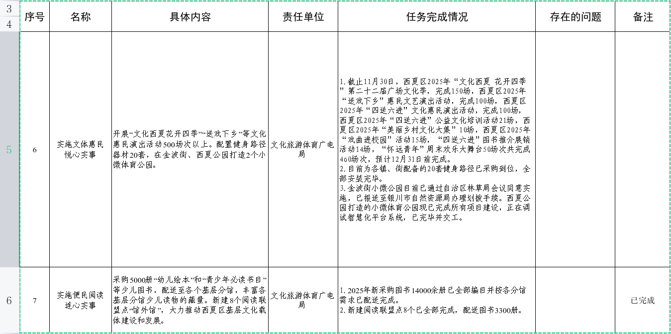 银川市西夏区文化旅游体育广电局2025年为民办实事进展情况(11月份)