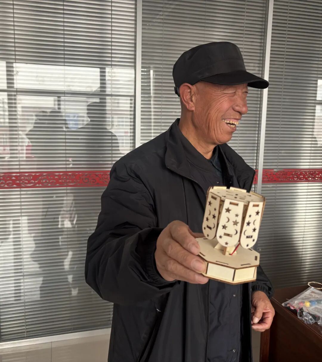 而巧手串珠和台灯DIY手工区更是成为“心灵手巧”老人们的展示舞台,穿线、打结、组装……五颜六色的珠子在指尖流转成精美挂饰,零散部件逐步拼接成温馨台灯,老人们手持亲手制作的作品,脸上洋溢着满满的成就感。