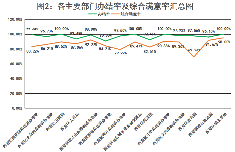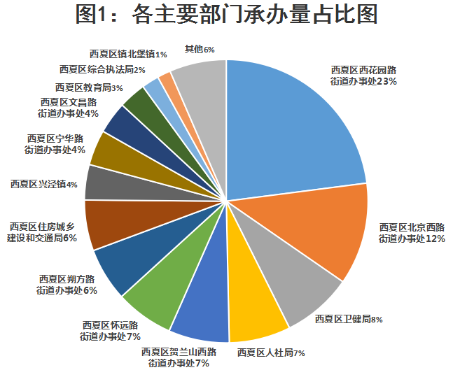 2021年11月,银川市“12345一号通”便民服务中心共下派西夏区市民诉求1311件,截止12月6日已办结1275件,有36件正在办理中,办结率97.25%,综合满意率86.27%。本月市民在“12345”平台诉求情况如下图所示: