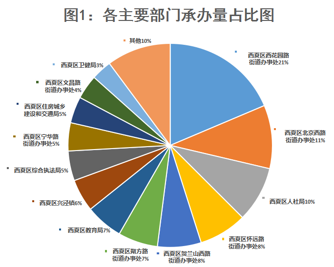 2021年12月,银川市“12345一号通”便民服务中心共下派西夏区市民诉求1144件,截止1月10日已办结1115件,有29件正在办理中,办结率97.47%,综合满意率75.73%。本月市民在“12345”平台诉求情况如下图所示: