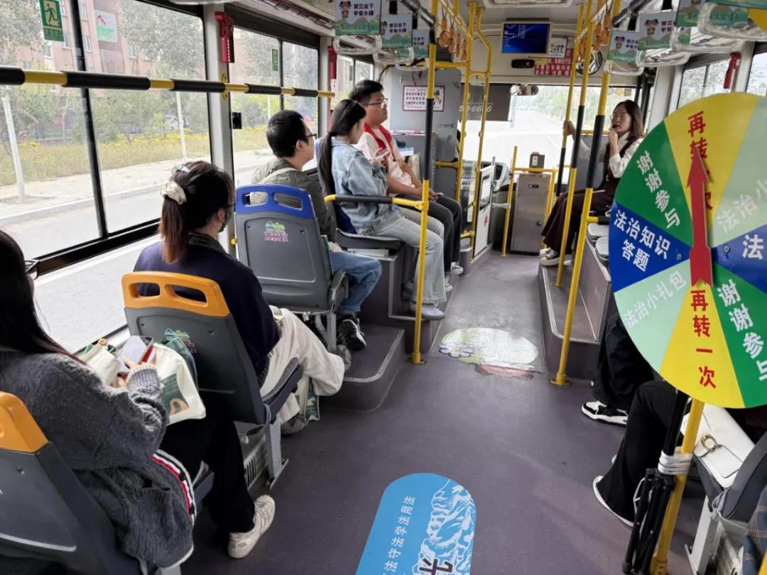 西夏区司法局利用旅游公共交通覆盖面大、流动性强、与群众生活联系紧密的特点,将公交车作为普法宣传的“流动课堂”,车身印制西夏区旅游+普法宣传公益广告和西夏区司法局公众号二维码,群众通过扫一扫可以进入“小律在线”获取法律意见书、典型案例,视频咨询律师法律问题等;车载电视循环播放普法宣传视频,LED屏滚动播放普法宣传标语,首期开通的法治公交结合沿线旅游景点进行车内广播报站并在车厢内放置宪法、民法典、旅游法等法治宣传册,旅途中还进行“法治转盘”等法律知识问答小游戏活动,以丰富多彩的法律元素设计吸引乘客主动学法,让游客感受一场“旅游”与“法”的相会。