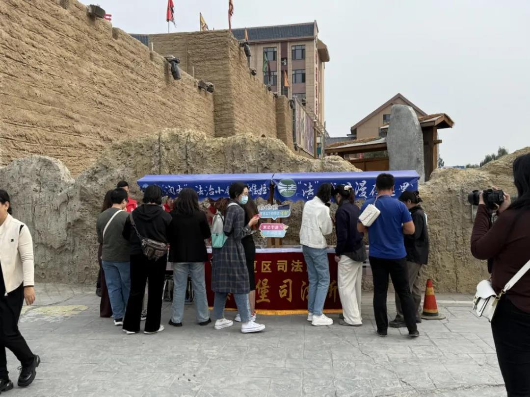 “镇北堡西部影城站,到了。镇北堡西部影城享有‘宁夏之旅、必游影城’赞誉,现已发展成为中国古代北方小城镇的缩影,集聚大量中华传统物质文化与非物质文化遗产。在这里,我们会不定时地开展趣味普法活动,让普法宣传‘活’起来‘实’起来,让大家‘沉浸式’感受,将宣传教育变生动。如果有兴趣的话,可以关注我们,参与进来。”