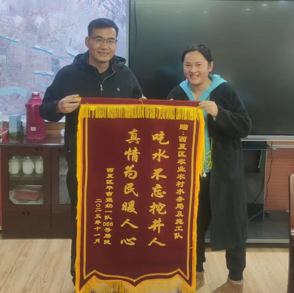 “感谢党和政府,为我们办了件大实事。这水喝着甜,心里更甜!”11月27日,在西夏区农业农村和水务局,平吉堡奶牛场一队居民刘女士手捧锦旗,笑着说道。她专程前来,将印有“真情为民暖人心 吃水不忘挖井人”字样的锦旗送到了工作人员手中,以表达对2024年农村饮水安全保障工程的由衷感激。