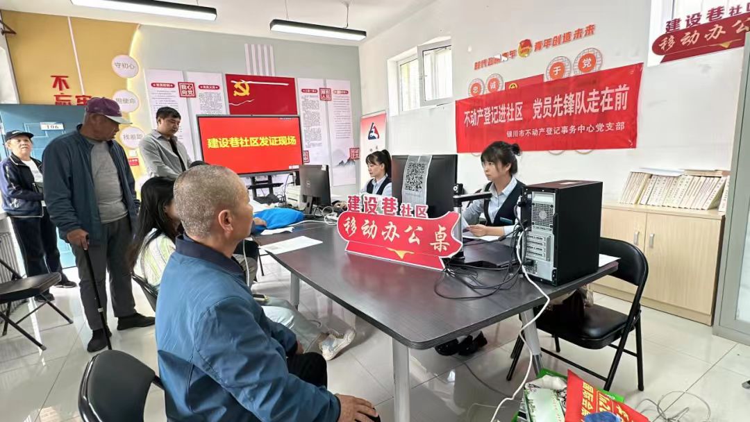 不动产登记关乎群众切身利益,也曾是不少人眼中“跑断腿、磨破嘴”的难事。银川市不动产登记事务中心西夏分中心(以下简称“西夏分中心”)聚焦辖区内老旧小区集中、老年群体较多问题,以北京西路街道建设巷社区银巴小区为例,主动联合建设巷社区成立专项工作组,打破坐等群众上门的传统模式,将服务重心下移,把“移动办公桌”直接搬到银巴小区居民家门口,破解群众办证难题。