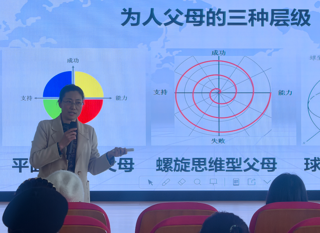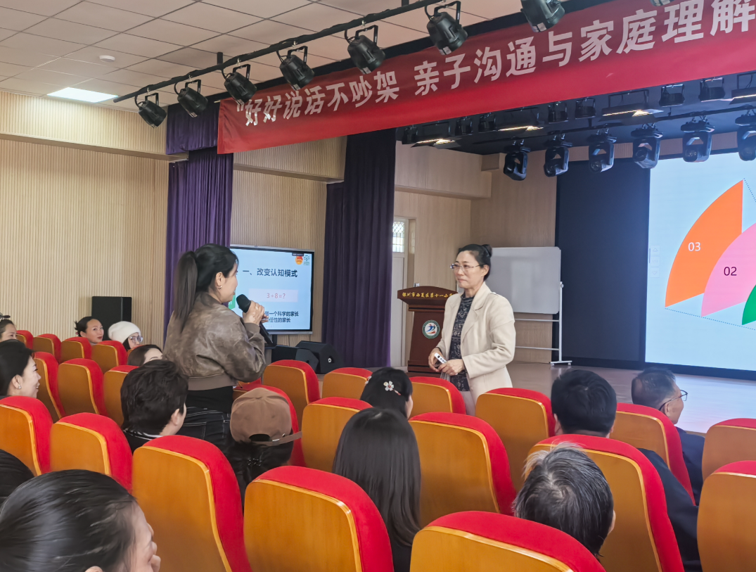 讲座现场,专业心理健康教育讲师紧扣当下亲子沟通中的常见痛点与难题,围绕为人父母的三种等级、改变认知模式、完善知识结构、建立家庭教育体系四大核心内容展开深度讲解。为避免理论讲解的枯燥乏味,讲师全程采用情境创设、真实案例剖析的生动形式,将晦涩的心理学知识与家庭教育理念转化为家长易懂、易学的实用内容,现场学习氛围十分浓厚。活动中,讲师特意设置贴近日常家庭生活的真实场景,抛出“孩子在校玩手机游戏,老师来电告知需家长配合管教,家长该如何与孩子有效沟通”这一典型问题,引导在场家长换位思考,站在孩子的角度理解其行为背后的情绪与需求。同时,她细致地传授正确接纳孩子情绪、理性化解亲子矛盾、优化沟通方式的实用技巧,手把手地教家长用温和且有效的方式解决家庭教育难题,摒弃争吵、指责等不良沟通方式。