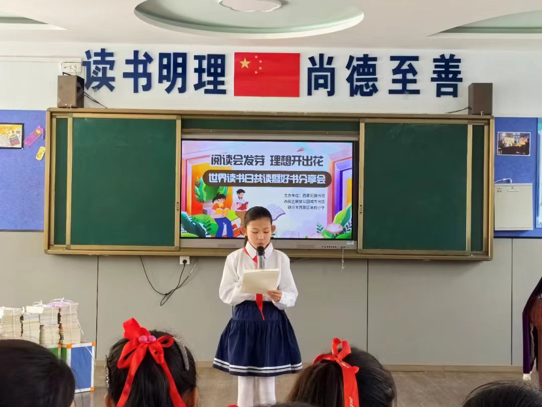 4月23日是第31个世界读书日,西夏区图书馆、解放公园城市书房联合银川市西夏区第四小学,举办“阅读会发芽 理想开出花”共读暨好书分享会,让孩子们沉浸式感受阅读魅力。