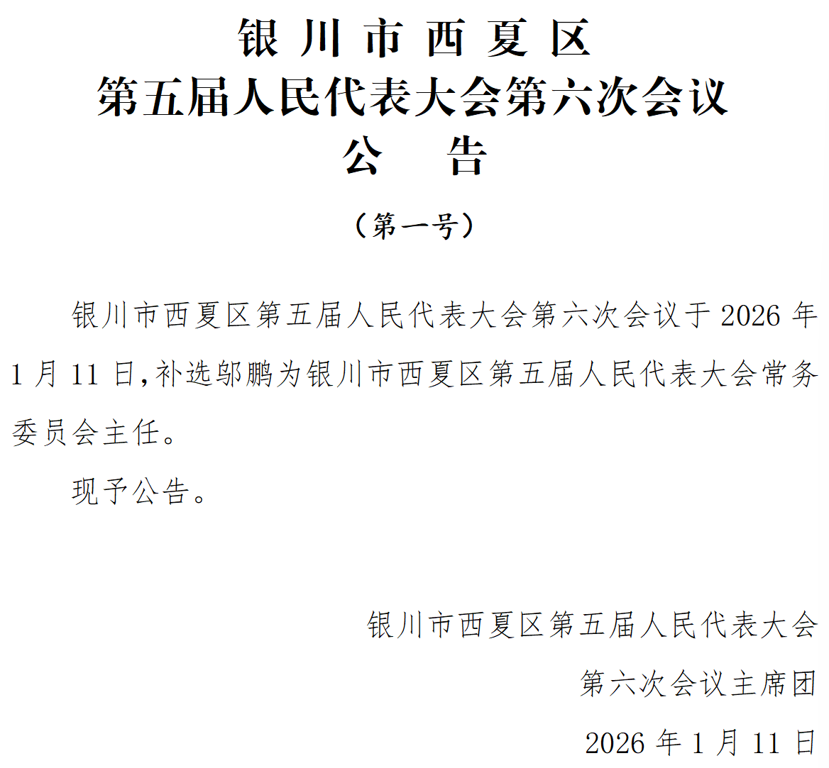 银川市西夏区第五届人民代表大会第六次会议公告(第一号)