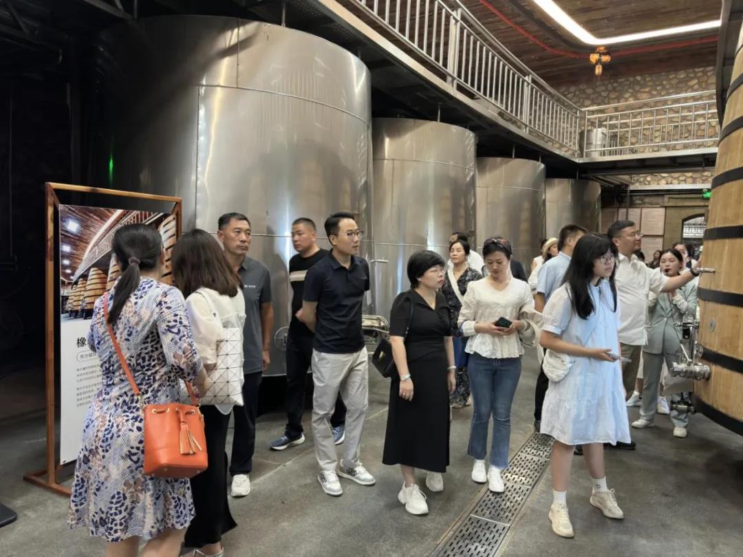 志辉源石葡萄酒庄,在原有废弃的砂石矿厂基础上,依靠现有地貌,经过20多年的绿化修复建造,打造成宁夏最具特色和代表性的红酒酒庄。在这里,考察团一行详细听取了宁夏葡萄酒文旅产业发展现状并品尝了酒庄特色红酒。通过参观葡萄酒庄,学习酿酒知识,体验葡萄酒文化,考察团对宁夏葡萄酒产业有了更加深刻的认识,感受到了葡萄酒的魅力,也希望更多企业家参与其中,做葡萄酒产业的实践者,葡萄酒文化的传播者。