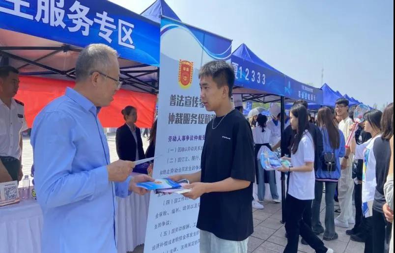 走出去,打好仲裁服务“主动仗”。西夏区人社局全面推进法律宣传和人社政策互动交融,以“人社普法+专场招聘”为模式,为广大求职者提供精准法律服务,通过在各场招聘会上设置法律咨询台、发放劳动用工普法宣传手册、现场答疑等方式开展普法宣传活动,重点向企业及求职人员普及招聘录用、劳动合同、劳动报酬等法律知识,发放各类宣传资料,现场解答群众咨询近千余人次,增强求职者的法律意识和维权意识,更好服务企业招聘。