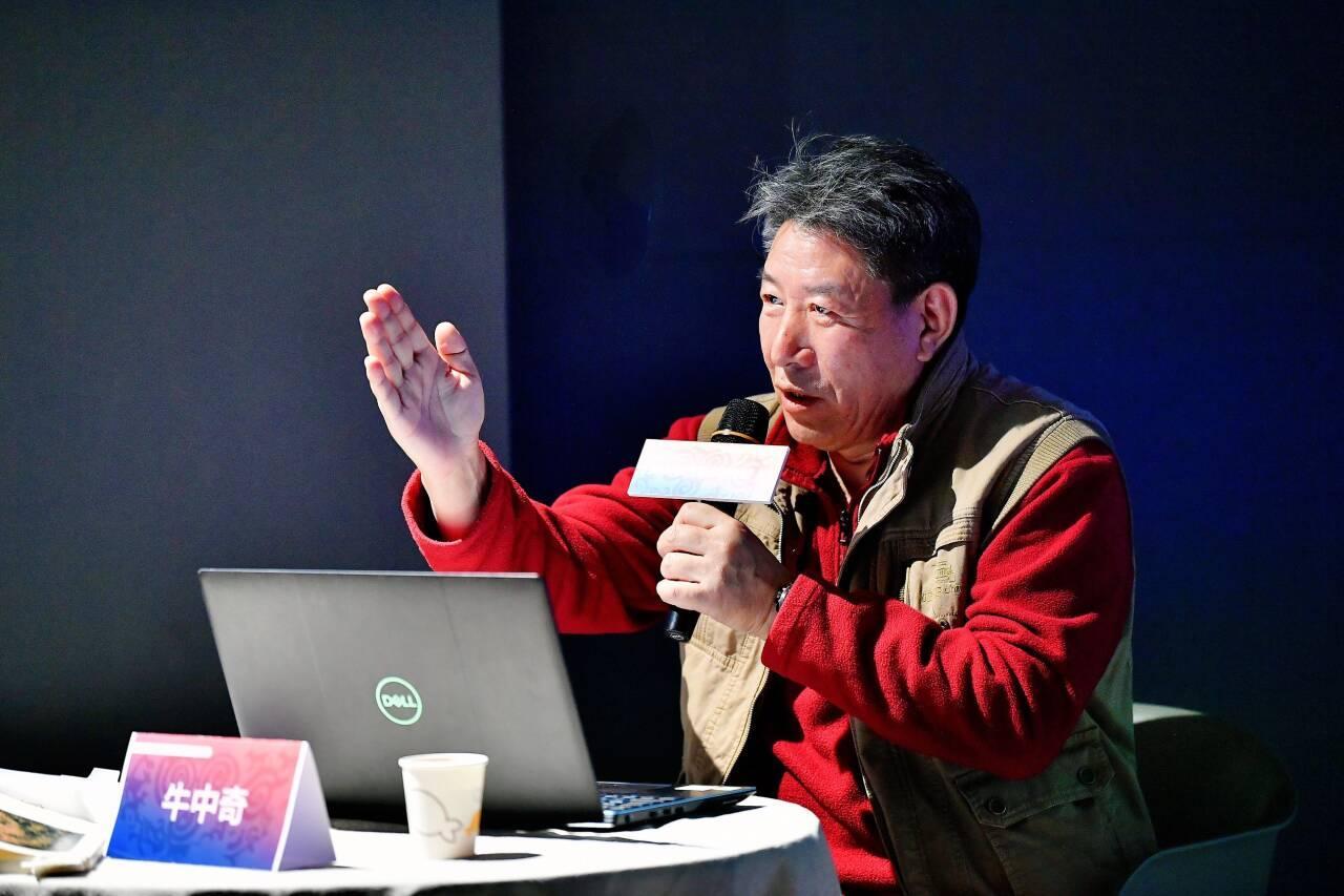 “我们在讨论的过程中,反复提起的几个解构岩画图象的基础概念,即物象、事象、意象、变象、合象,称之为‘岩画五象’。需要强调的是,这‘五象’是一个不可分割的整体,我们只是在强调或侧重某方面时才特意突出某象。岩画石绝大多数都独立分布在群山里,有的在山顶,有的在沟底,有的在半山腰,几乎没有两块石头在一起的情况。寻找它们,并走到跟前仔细端详,可以说,这些岩画都是一步一步‘走出来’的,需要一定的体力和耐心……”讲座让大家感受到了那些刻画在岩石上的古老智慧和艺术魅力,仿佛穿越时空,与史前人类进行了一场心灵的对话。讲座结束后,现场听众热情不减,纷纷积极提问,与牛中奇老师进行了深入的互动交流。