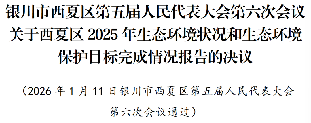 银川市西夏区第五届人民代表大会第六次会议关于西夏区2025年生态环境状况和生态环境保护目标完成情况报告的决议