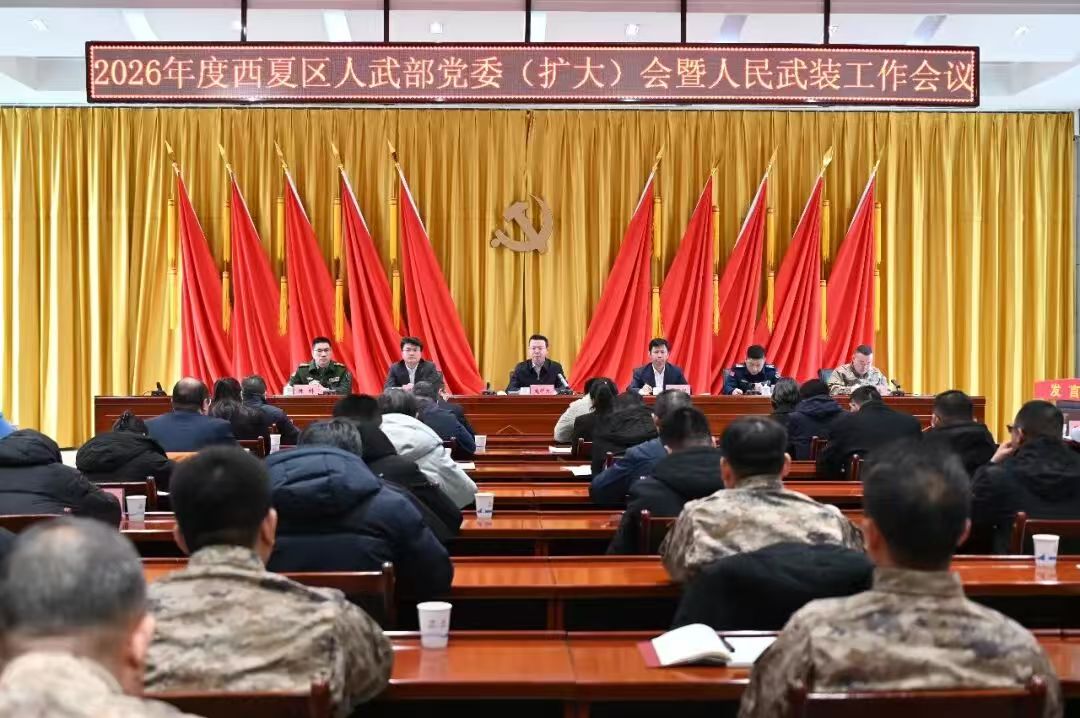 1月29日,西夏区召开人武部党委(扩大)会议暨人民武装工作会议,传达学习宁夏军区党委十三届六次全体(扩大)会议、银川警备区党委五届十二次全体(扩大)会议精神,听取各镇(街)党(工)委书记党管武装工作述职,总结西夏区2025年党管武装工作,部署2026年工作任务。银川市人大常委会副主任、西夏区委书记、人武部党委第一书记庞子杰出席会议并讲话。