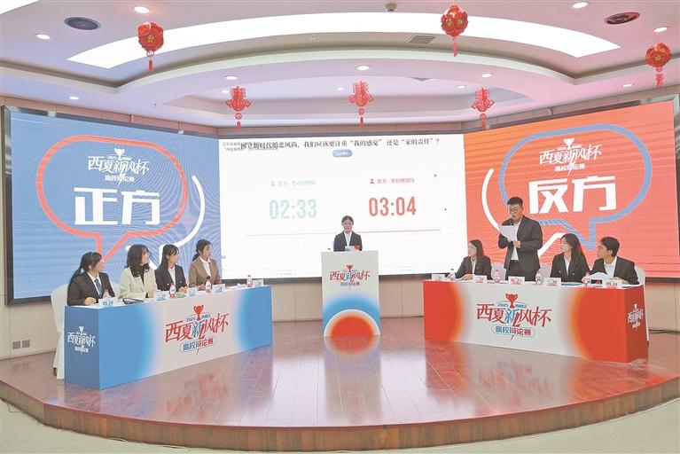 银川中关村信息谷路演厅内,掌声与思辨的火花交织碰撞。“西夏新风杯”高校辩论赛决赛在此举行。“树立新时代婚恋风尚,我们应该更注重‘我的感觉’还是‘家的责任’”的辩题引发全场热议。“新时代的婚恋观既要守护内心的真挚情感,更不能脱离家庭责任的担当!”宁夏大学“文心辩理队”辩手的发言掷地有声。这场吸引3所高校数百名学子参与的活动,通过“以赛促学、以学促行”的方式,让移风易俗理念在校园内外落地生根。2025年以来,西夏区聚焦青年群体特点,联合辖区高校打造“辩论+宣讲”“沙龙+分享”等特色活动,围绕就业创业、婚恋观、志愿服务等青年关心的话题、开展互动式宣讲30余场,覆盖青年群体5000余人次,让理论学习在思想碰撞中入脑入心。