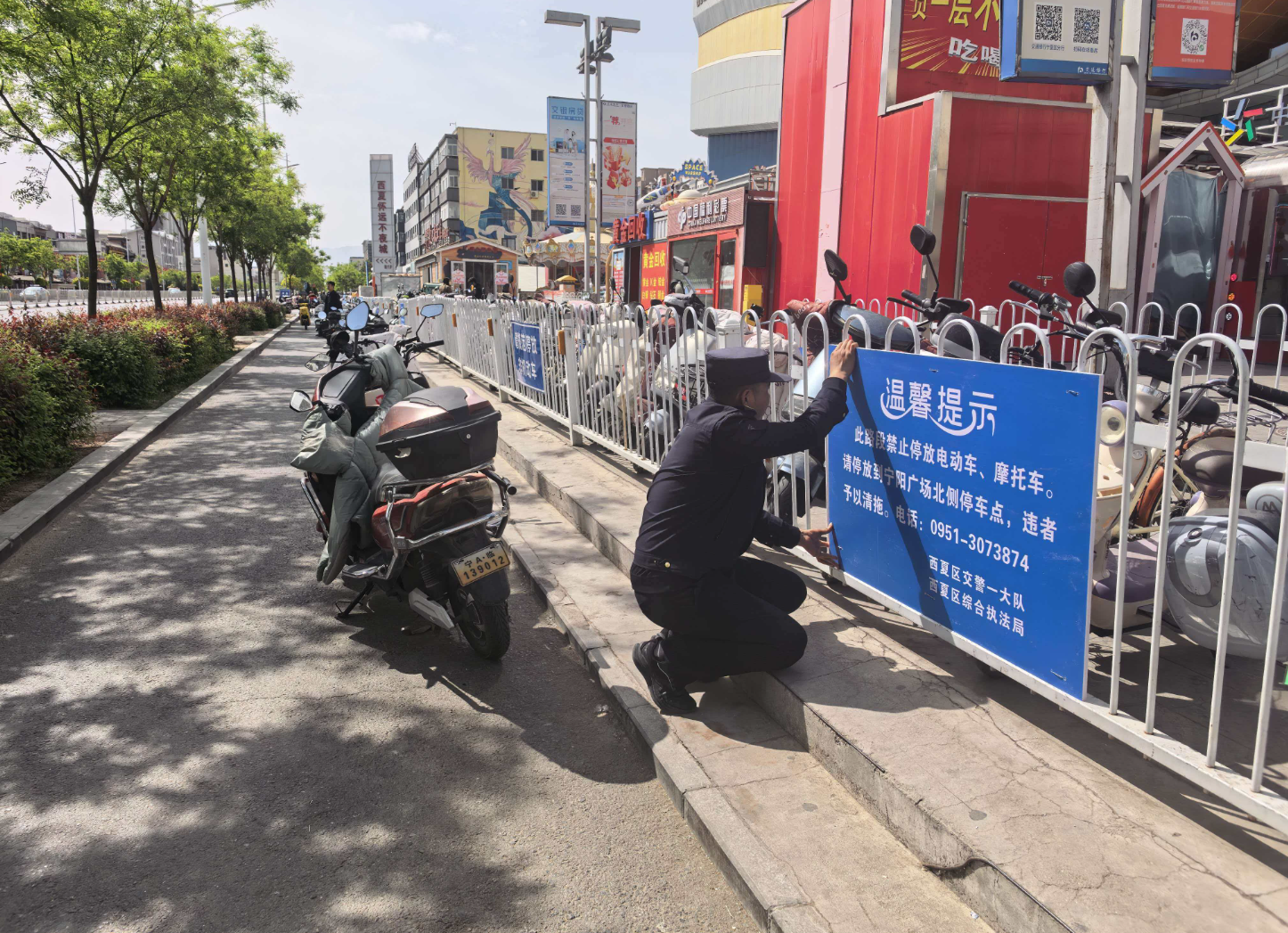 西夏区综合执法局不仅从源头化解“停车难”,还采取一系列举措不断压实企业主体责任。比如,集中召集美团、哈啰、青桔、微公交4家运营企业,明确“五一”期间运维标准与应急响应时限。比如,督促企业优化电子围栏技术,精准划定禁停区与限停区,利用科技手段约束用户停放行为。再比如,要求企业增派运维人员,在夜市晚高峰期间加密车辆清运和现场摆放频次。推动企业探索建立用户信用惩戒机制,对恶意占道、屡教不改的用户采取限制骑行等措施,引导文明用车。