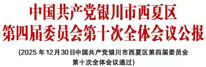 中国共产党银川市西夏区第四届委员会第十次全体会议暨区委经济工作会议,于2025年12月30日在银川举行。
