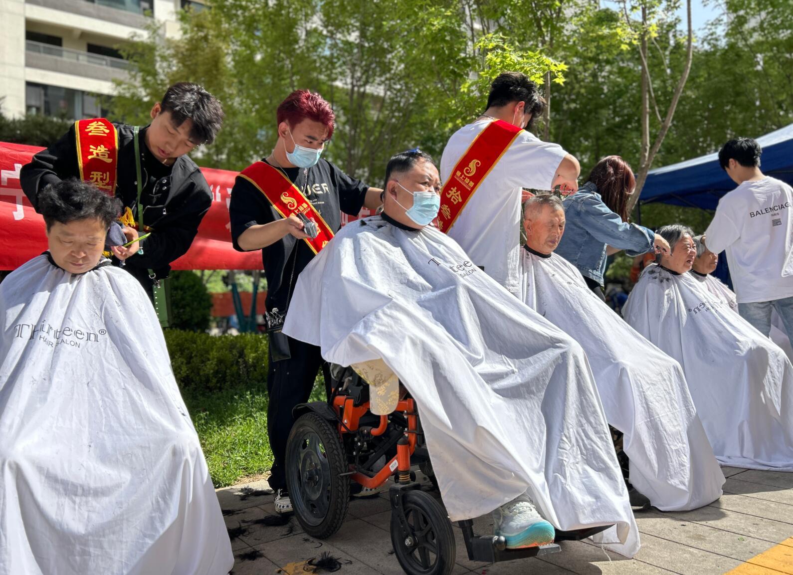 活动现场,辖区物业公司的工作人员为业主打磨刀具、清洗地毯。社区联合新华百货超市开展“便民超市”进小区。“今天的商品价格还挺实惠的,比外面的划算多了!”闫阿姨说。义剪区,志愿者在小区里细心地为居民们围罩衣、打湿头发,耐心询问业主要求后,随着在电推剪的“嗡嗡”声和剪刀的“咔咔”声,完成了居民们的“私人订制”发型,摸着自己清爽利落的发型,居民纷纷为志愿者竖起大拇指。