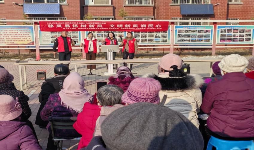 “移风易俗意义大、传统陋习要抛下、社会发展新时代 ,变化快!”镇北堡镇镇北堡村新时代文明实践站前的广场上,工作人员在台上的表演引得在场群众掌声不断。一场别开生面的“移风易俗”主题活动在冬日暖阳中如火如荼地进行着。