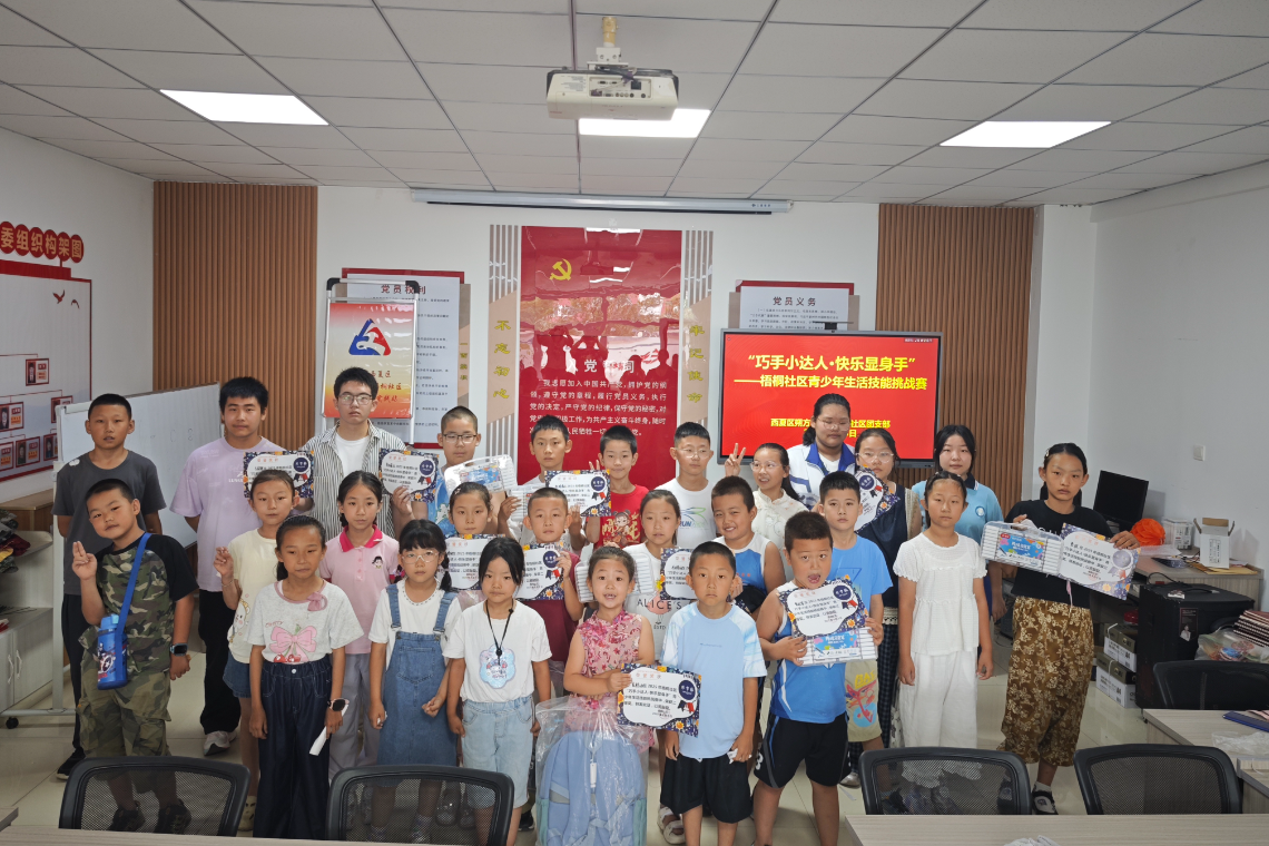 此次妙趣横生的生活技能挑战赛,正是梧桐社区精心构筑暑期关爱服务体系的一个精彩缩影。为破解“看护难”,梧桐社区积极整合多方资源,创新推出“暑期电子技术与控制训练营”“暑期艺术营”两大公益项目。通过“科技探索+艺术熏陶”双轨并进、精准施策的服务模式,致力于为孩子们打造一个有深度、有趣味、有温度的缤纷假期。真正解家长之忧,让孩子们在动手实践中激发潜能,在艺术熏陶中滋养心灵,在科技探索中启迪智慧,助力孩子全方位成长,为未来插上翱翔的双翼。
