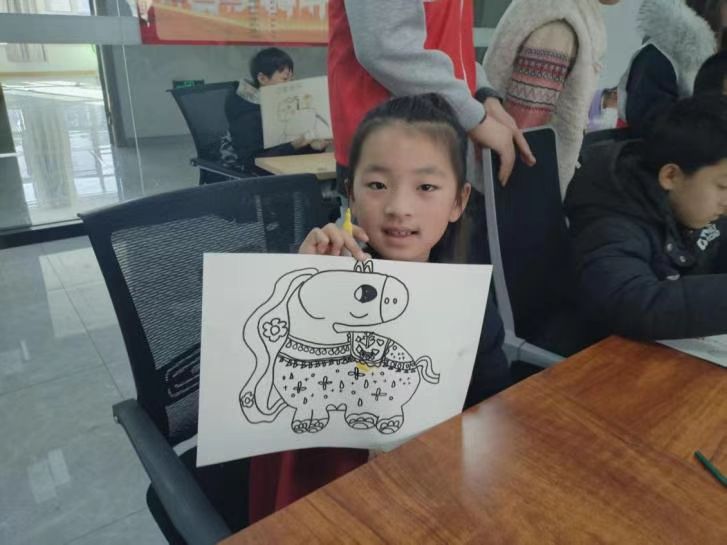 绘画环节,志愿者老师结合马年生肖文化,讲述了宁夏本地流传的骏马故事,随后示范生肖马简笔画的绘制技巧。“大家可以发挥想象力,给马儿画上翅膀,或者让它穿上漂亮的衣服!”在老师的引导下,孩子们脑洞大开,用鲜艳的色彩、灵动的线条勾勒出形态各异的骏马形象。作品展示环节,孩子们相互分享创作思路,在趣味点评中收获满满。“老师讲的骏马故事特别有意思,我画的是一匹会飞的马,希望新的一年能像它一样勇敢向前!”三年级学生陈浩宇自信满满地说。
