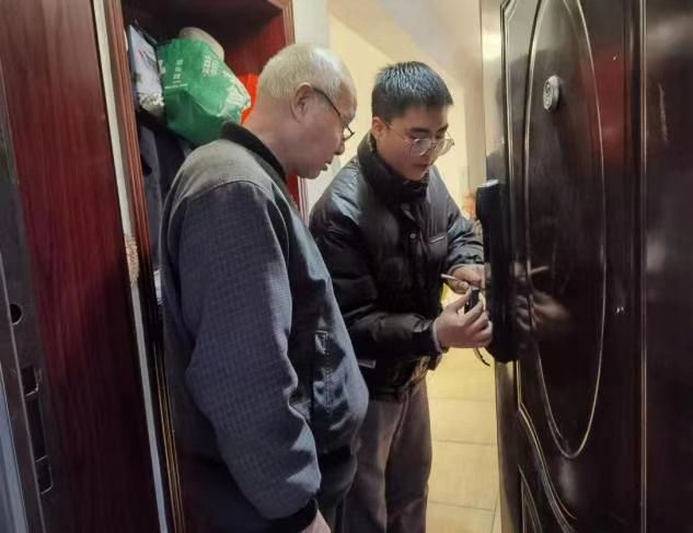 民有所呼,我有所应。星光巷社区没有让老人的担忧停留在“被听见”的阶段,而是主动对接各方资源,聚焦“适老、便民、安全”核心需求,积极寻找解决办法。经过沟通协调,社区成功对接爱德基金会,发起“黄扶手计划3.0——守‘忘’行动”,为老人的安居生活找到了新支点。社区工作人员逐户摸排、细致核实,最终确定58户高龄、独居老人家庭为智能锁安装对象。