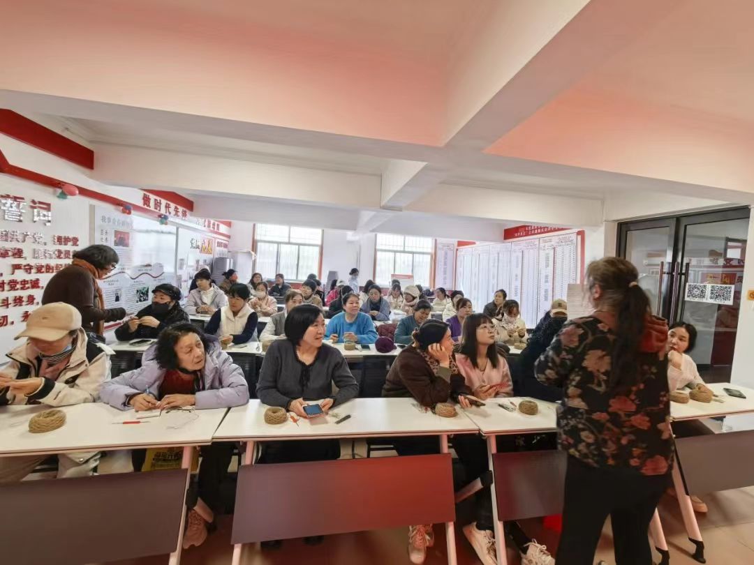 “找准角度,把麻绳从指尖缝隙穿过来……”近日,怀远路街道农牧场社区活动室内暖意融融、笑语不断,40余名居民围坐一堂,手持钩针、麻线,在专业老师的指导下认真学习麻编技艺,在家门口练就一技之长,拓宽增收渠道。