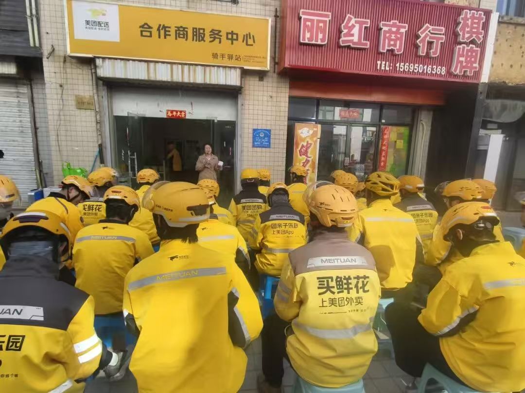 为深入贯彻落实全国两会和区市两会精神,扎实开展“我为群众办实事”实践活动,纺苑社区联合北京西路街道办事处、西夏区委社会工作部,主动对接辖区美团外卖站点,为外卖骑手开展交通安全法律知识宣讲、健康义诊、心理咨询及微心愿征集系列便民服务,以高效暖心的举措,为奔波在一线的骑手们送上实实在在的关怀与温暖。