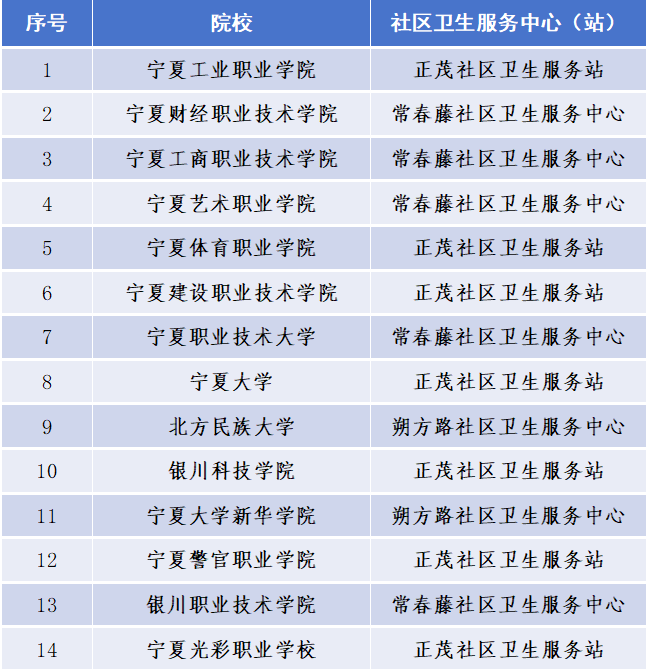 西夏区高校附近社区卫生服务中心(站)